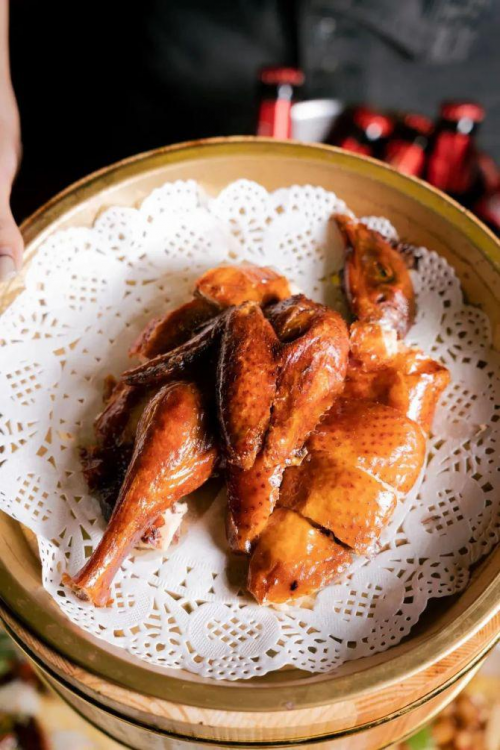 要說(shuō)這里最出圈的菜品是什么,那一定是外酥里嫩的胡桃里烤雞??倦u色澤似琥珀,又似棕紅,周身油亮亮的光澤勾引著食客。