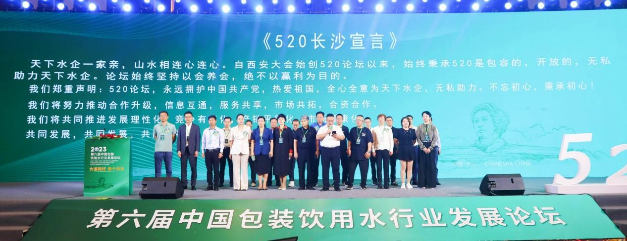 本屆中國(guó)包裝飲用水行業(yè)發(fā)展論壇(長(zhǎng)沙 520 大會(huì)),在嘉賓分享前開啟了兩個(gè)感人的板塊,即《嗨,520!》行業(yè)發(fā)展精神的視頻和中國(guó)包裝飲用水行業(yè)發(fā)展論壇理事代表鏗鏘有力的《520宣言》:520論壇永遠(yuǎn)擁護(hù)中國(guó)共產(chǎn)黨,全心全意為天下水企無私助力······。真誠(chéng)又真實(shí)的《嗨,520!》和《520宣言》,贏得了現(xiàn)場(chǎng)嘉賓、與會(huì)者的陣陣掌聲與喝彩。