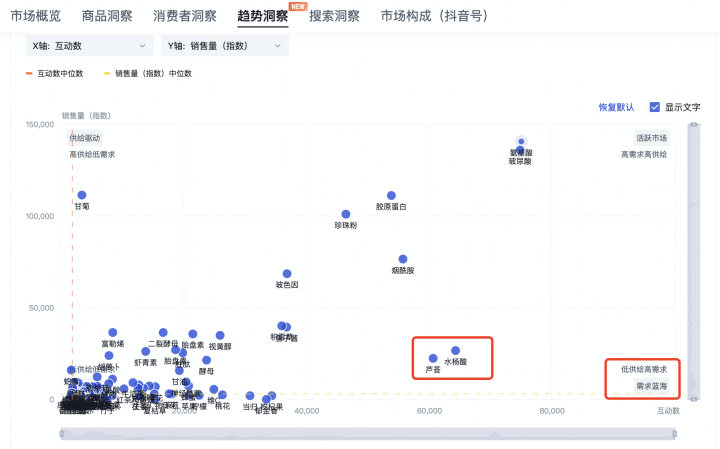 很多品牌在投放時才想到標(biāo)簽,但基于「云創(chuàng)行業(yè)標(biāo)簽」的行業(yè)視角,品牌可以深入了解消費(fèi)者需求和市場趨勢,在產(chǎn)品賣點(diǎn)、功效、成分、使用場景等更細(xì)的維度做更深度洞察,比如了解消費(fèi)者對某些成分的偏好和需求,挖掘產(chǎn)品的優(yōu)點(diǎn)和優(yōu)勢,以此作為關(guān)鍵詞進(jìn)行推廣。通過這種方式,品牌可以做出更明智的營銷決策,選對賽道、做好內(nèi)容。
